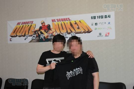 몇개 안되는 쓸만한 사진중 하나로, 업계 유명인사분들은 초상권 때문에 모자이크 처리 하였으며 듀크 뉴켐 프로듀서 분은 이날 비행기를 타고 돌아가셨으며 어짜피 예판넷에 절대 오실 분이 아닐꺼라 생각하고 멋진 얼굴을 공개 하였습니다.