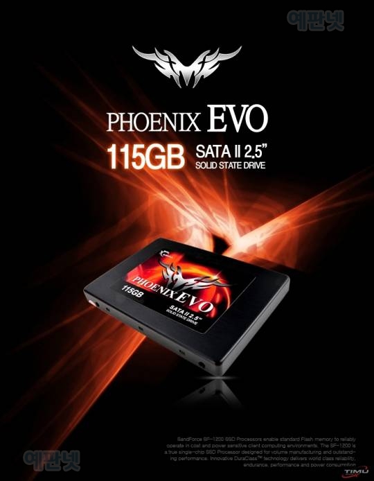 S-ATA II 인터페이스 기반의 Phoenix EVO 115GB 제품은 최대 280MB/s 의 읽기 속도와 최대 270MB/s 의 쓰기 속도를 지원하며, 4K 랜덤 쓰기 에서는 35k IOPS 속도를 보여준다. 또 SSD 최대 장점 중에 하나인 0.2m 의 억세스 시간으로 데이터 접근에 탁월한 성능 역시 보장한다.
