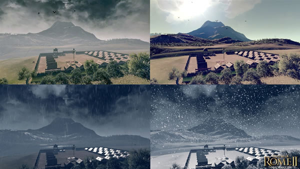 9 월 3 일 출시가 임박한 토탈 워 로마 2("Total War : Rome II") . 새로이 공식 Facebook에서 본작의 역동적인 날씨 시스템을 소개하는 스크린 샷이 공개, 동일한 위치에서 완전히 인상이 다른 맑은 하늘, 흐림 , 비, 눈오는 날의 이미지가 등장했습니다.