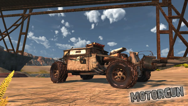 모토건("MotorGun")은 현실적인 차량 물리엔진 기반 게임 플레이와, 차량의 커스터마이즈를 특색으로하는 팀 기반의 멀티 플레이 타이틀로, "데스 레이스 2000" 또는 "매드 맥스" 에 인스파이어 된 포스트 아포 칼립스의 세계를 무대로, 패권을 다투는 3 세력 (Ratters과 Scavengers, Techies)의 싸움을 그린 친숙한 PC 용 타이틀 입니다.