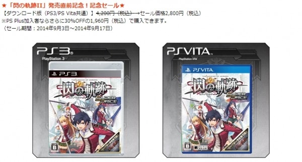 카테고리 없음 영웅전설 섬의 궤적 세일 이벤트 개시 예정 by yepan 2014. 9. 2. 영웅전설 섬의 궤적 세일 이벤트 개시 예정출처 : 예판넷 왁스발리 님의 글 ★「섬의 궤적II」발매 직전 기념!기념 세일★【다운로드판(PS3/PS Vita 공통)】4,200엔(세금포함)→세일 가격 2,800엔(세금포함)※PS Plus 가입자라면 거기에 30%OFF된 1,960엔(세금포함)으로 구매 가능(세일 기간:2014년 9월 3일~2014년 9월 17일)출처 : 예판넷 영웅전설 섬의 궤적 세일 이벤트 개시 예정 - 왁스발리 님의 글 공유하기 게시글 관리 예약판매 집중탐구 댓글