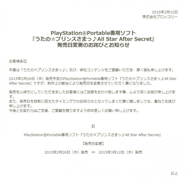 카테고리 없음 노래의☆왕자님♪ All Star After Secret 발매 연기 by yepan 2015. 2. 13. 노래의☆왕자님♪ All Star After Secret 발매 연기출처 : 예판넷 왁스발리 님의 글 발매일 변경2015년 2월 26일(목)발매 ⇒ 2015년 3월 12일(목)발매출처 : 예판넷 노래의☆왕자님♪ All Star After Secret 발매 연기 - 왁스발리 님의 글 공유하기 게시글 관리 예약판매 집중탐구 댓글