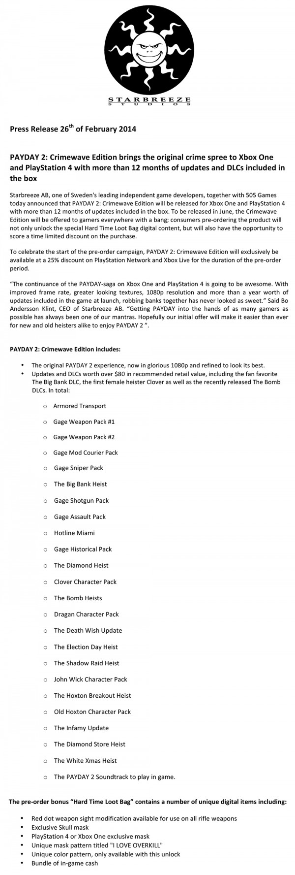 카테고리 없음 페이데이 2 크라임웨이브 에디션 트레일러 by yepan 2015. 2. 27. 페이데이 2 크라임웨이브 에디션 트레일러출처 : 예판넷 왁스발리 님의 글 영상이 보이지 않을때 : http://www.youtube.com/lnEPxU6SevI영상이 보이지 않을때 : http://www.youtube.com/alBp5YS7t6I6월 발매출처 : 예판넷 페이데이 2 크라임웨이브 에디션 트레일러 - 왁스발리 님의 글 공유하기 게시글 관리 예약판매 집중탐구 댓글