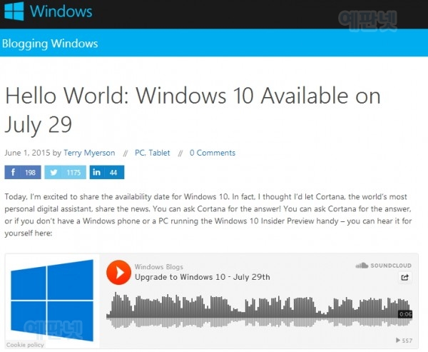 카테고리 없음 Windows 10의 발매일은 7월 29일. 알려진대로 Windows 8.1 / 7에서 업그레이드 예약도 가능, PV 공개 by yepan 2015. 6. 1. Windows 10의 발매일은 7월 29일. 알려진대로 Windows 8.1 / 7에서 업그레이드 예약도 가능, PV 공개출처 : 예판넷 예판넷 님의 글 북미 시간 2015 년 6 월 1 일, Microsoft는 차기 Windows 인 ' Windows 10 '을 7 월 29 일에 출시 한다고 공식 Blog에서 발표했다. 예고 된대로 Windows 8.x 및 Windows 7 사용자라면 무료로 업그레이드가 가능하다. 또한 Windows 8.1 / 7에서 Windows 10로 업그레이드 예약도 이날부터 가능. 영상이 보이지 않을때 : http://www.youtube.com/Wwc5jKc-EgE출처 : 예판넷 Windows 10의 발매일은 7월 29일. 알려진대로 Windows 8.1 / 7에서 업그레이드 예약도 가능, PV 공개 - 예판넷 님의 글 공유하기 게시글 관리 예약판매 집중탐구 댓글