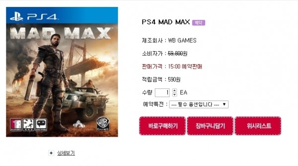 카테고리 없음 PS4 매드 맥스 2015년 8월 26일 15시부터 예약 판매 개시 by yepan 2015. 8. 26. PS4 매드 맥스 2015년 8월 26일 15시부터 예약 판매 개시출처 : 예판넷 왁스발리 님의 글 출처 : 예판넷 PS4 매드 맥스 2015년 8월 26일 15시부터 예약 판매 개시 - 왁스발리 님의 글 공유하기 게시글 관리 예약판매 집중탐구 댓글