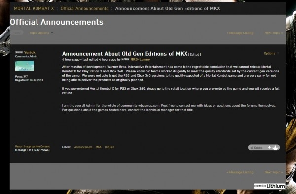 카테고리 없음 모탈 컴뱃 X PS3/Xbox 360판 캔슬 by yepan 2015. 8. 31. 모탈 컴뱃 X PS3/Xbox 360판 캔슬출처 : 예판넷 왁스발리 님의 글 퀄리티 문제로 발매가 취소출처 : 예판넷 모탈 컴뱃 X PS3/Xbox 360판 캔슬 - 왁스발리 님의 글 공유하기 게시글 관리 예약판매 집중탐구 댓글