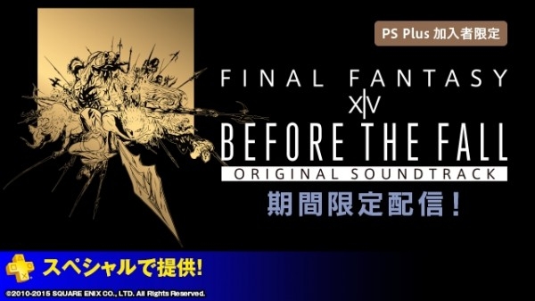 PS Store에서 『파이널 판타지 XIV: 신생 에오르제아』(패치2.2~2.5 까지)의 게임내 BGM 일부를 게임 영상과 함께 즐길 수 있는 「Before the Fall: FINAL FANTASY XIV Original Soundtrack PlayStation®Plus Edition」을 독점 배포.