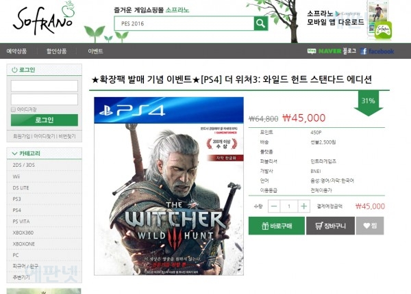 카테고리 없음 [PS4] 위쳐 3 확장팩 발매 기념 위쳐3 원본 특가 판매 중 by yepan 2015. 10. 23. [PS4] 위쳐 3 확장팩 발매 기념 위쳐3 원본 특가 판매 중출처 : 예판넷 예판넷 님의 글 [PS4] 위쳐 3 확장팩 발매 기념 위쳐3 원본 특가 판매 중 확인 했습니다! 이벤트성 판매이며, 조기 품절 될 수 있다고 합니다. 이벤트 바로가기 : http://sofrano.com/?act=shop.goods_view&GS=406&GC=GD07 출처 : 예판넷 [PS4] 위쳐 3 확장팩 발매 기념 위쳐3 원본 특가 판매 중 - 예판넷 님의 글 공유하기 게시글 관리 예약판매 집중탐구 댓글