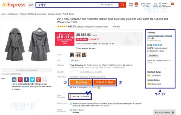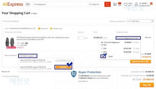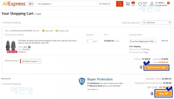 출처 : 예판넷 한국 배송 가능한 알리익스프레스 해외 직구 방법 따라하기 - 예판넷 님의 글