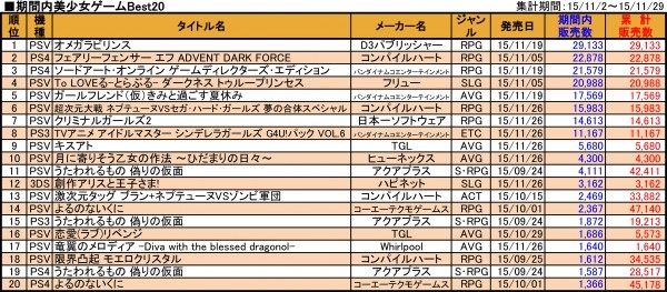 출처 : 예판넷 2015년 11월 미소녀게임 판매 랭킹 - 왁스발리 님의 글