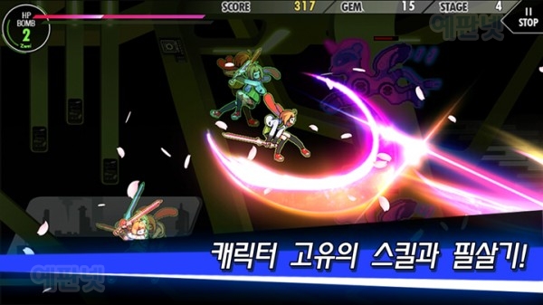 - 현란한 탄막을 헤치며 진행하는 다이나믹 액션!