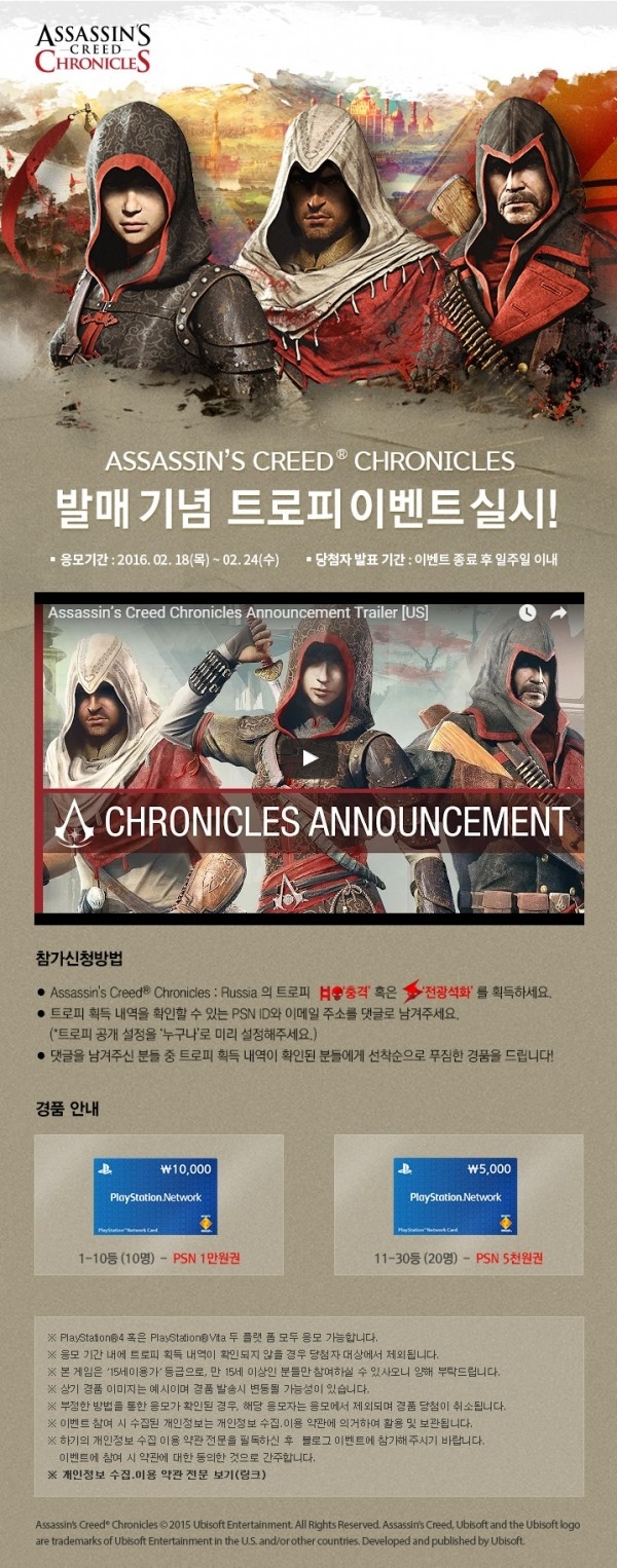 카테고리 없음 어쌔신 크리드 크로니클 발매기념 트로피 이벤트 실시 by yepan 2016. 2. 18. 어쌔신 크리드 크로니클 발매기념 트로피 이벤트 실시출처 : 예판넷 왁스발리 님의 글 출처 : 예판넷 어쌔신 크리드 크로니클 발매기념 트로피 이벤트 실시 - 왁스발리 님의 글 공유하기 게시글 관리 예약판매 집중탐구 댓글
