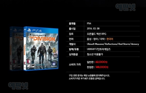 출처 : 예판넷 더 디비젼 예약판매 시간 및 가격 공개 - 예판넷 님의 글