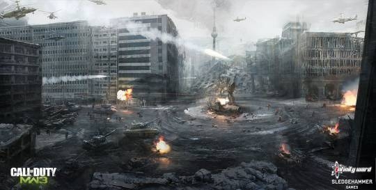폐허가 된 베를린의 모습 등 대규모 스케일의 전장이 그려져 있습니다.