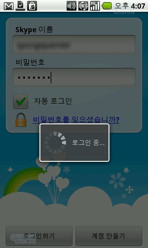 3G망으로도 스카이프 통화가 되는군요...