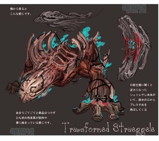외형:뼛조각이 피부에 달라붙은 여성의 모습을 하고 있다.