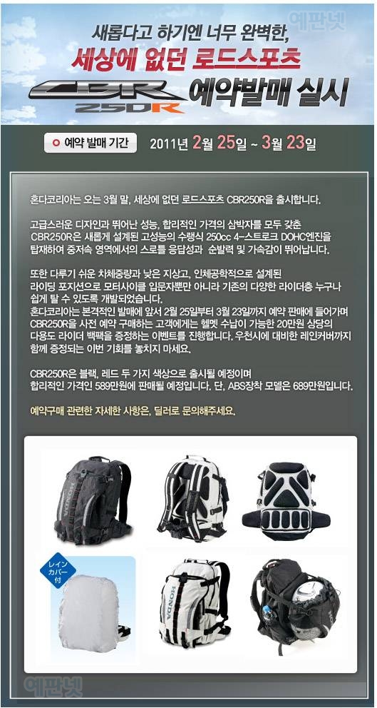 카테고리 없음 HONDA CBR 250R by yepan 2011. 3. 17. HONDA CBR 250R - by 매냑군예판넷에서 퍼온 글입니다.웹에서의 글은 자신의 얼굴이며 행동입니다. 한번 더 생각하고 글을 쓰는 네티즌이 됩시다^^혼다의 CBR250 예약판매군요250cc가 다시 부활하는듯하네요본 제품은 made in japan이 아니기때문에 지진 여파는 상없을듯하네요 공유하기 게시글 관리 예약판매 집중탐구 댓글