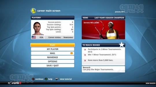 캐리어 모드는 신인으로 데뷔해 세계 랭킹 1위에 도전하는