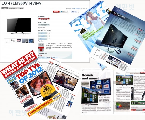 영국의 대표적인 온라인 IT 매체인 ‘씨넷 영국(CNET UK)’은 최근 47인치 최고급 모델(47LM960V)을 “모든 면에서 매력적인 TV”라며 최고제품 격인 에디터스 초이스(Editor’s Choice)로 선정했다.