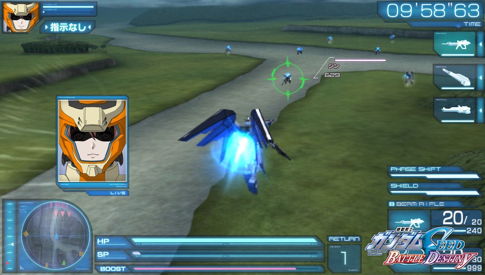초반 배치 기체는 위에서 부터 진, 진-어썰트, 시그, 그리고 바쿠가 등장합니다 초반에 진과 진-어썰트의 대량공세로