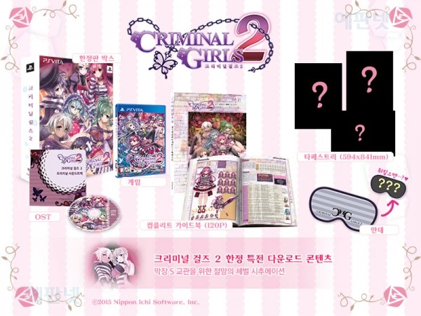 인트라게임즈(대표 배상찬)는 니폰이치 소프트웨어(대표 니이카와 소헤이)와 협력하여 한국어판 발매가 결정된 PlayStation®Vita전용 소녀체벌RPG “크리미널 걸즈2”의 한국 오리지널 한정판의 구성품 상세를 비롯한 새로운 정보를 공개했다.