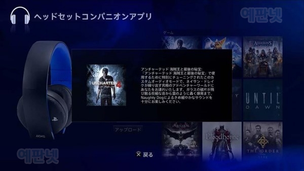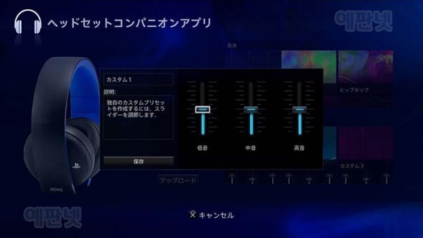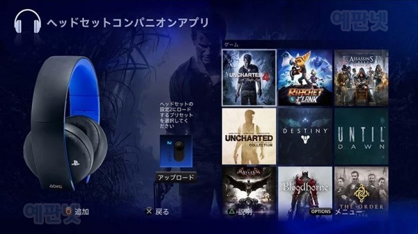 언챠티드 4 전용 커스텀 오디오 모드(프리셋)도 준비. 해당 게임 타이틀 용으로 조정 된 사용자 정의 오디오 모드를 헤드셋에 업로드하거나 원하는대로 세밀하게 조절할 수있어 "무선 서라운드 헤드셋 '의 게임 경험을 더 풍부하게 연출한다고 합니다. 이하 일본 PS BLOG 내용 <PS4® 용 어플리 "헤드셋 컴페니언 응용 프로그램" 의 주요 기능> 이 응용 프로그램을 사용한 설정은 "무선 서라운드 헤드셋"의 "설정 2"에 저장됩니다. 헤드셋의 전원 버튼을 "설정 2"로 한 상태에서 사용하십시오. 덧붙여 이용에는 "시스템 소프트웨어 버전 3.50"에 대한 업데이트가 필요합니다. ◆ 커스텀 오디오 모드의 업로드 대응 게임 타이틀 자체 조정 된 사용자 정의 오디오 모드를 헤드셋에 업로드 할 수 있습니다. 영화 나 음악 등 장르에 특화된 오디오 모드도 준비되어 있습니다.