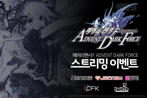 추가로, CFK와 글로벌 방송 커뮤니티 「트위치」가 협력하여 진행되고 있는 「페어리 펜서 F ADVENT DARK FORCE」의 발매 기념 이벤트도 계속해서 진행되고 있다. 이벤트 진행 2주차에서는 게임을 구매해서 방송해준 유저들을 대상으로 증정되는 포스터 외에도, 방송을 시청하는 모습을 인증하면 추첨을 통해 게임 타이틀을 제공하는 이벤트가 함께 진행된다. 이벤트의 참여 방법과 자세한 내용은 트위치의 한국 공식 페이스북 페이지(