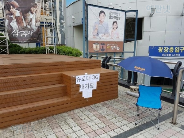 슈로대 OG 대기줄 이라고 직접 종이에 적어서 자리를 잡고 붙여 놓아 주셨습니다.(한정판줄)