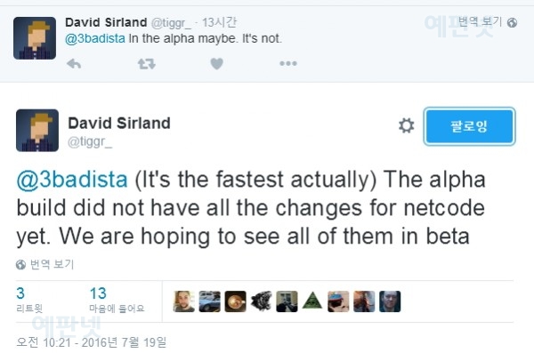 이것은 David Sirland 씨가 팬의 질문에 따라 밝힌 것으로, 알파 빌드는 netcode에 모든 변화와 개선을 도입 한 것은 아니었으며, 베타 때 이러한 개선을 모두 도입하고 싶다고 설명하고 있습니다.