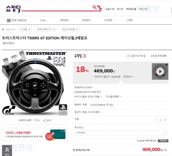 8. 2016.12.12 [11번가 쇼킹딜] 트러스트 마스터 T300RS GT에디션 3패달 포함 한정수량 특판