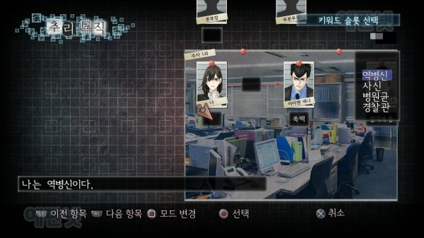 당연하겠지만 분기에 따라서 내용이 바뀌며, 수사하는 관점에 따라 내용의 진행이 달라지고 또, 다른 분기에서는 나오지 않았던 설명 같은 것이나 밝혀지지 않았던 것들이 밝혀지는 것, 그리고 분기에 따라서 나오는 일러스트가 바뀐다는 점 등등입니다.