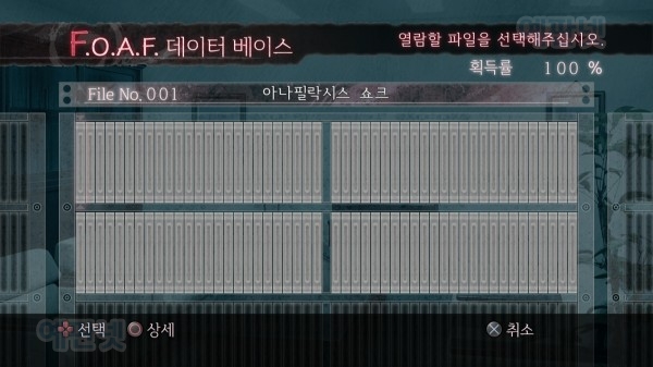 <엑스트라 메뉴의 F.O.A.F 탭에서 볼 수 있는 데이터 베이스.