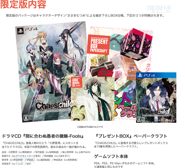 카오스 차일드(CHAOS; CHILD) 공식 사이트 리뉴얼, 15개의 점포별 예약특전 내용 공개
